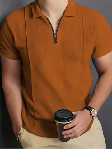 Casual Polo T-Shirt, Men's Regular Fit Solid Color Casual Polo Shirt with Zipper Closure for Summer Outings - Short Sleeve Golf Tee for Men's Leisure Style.